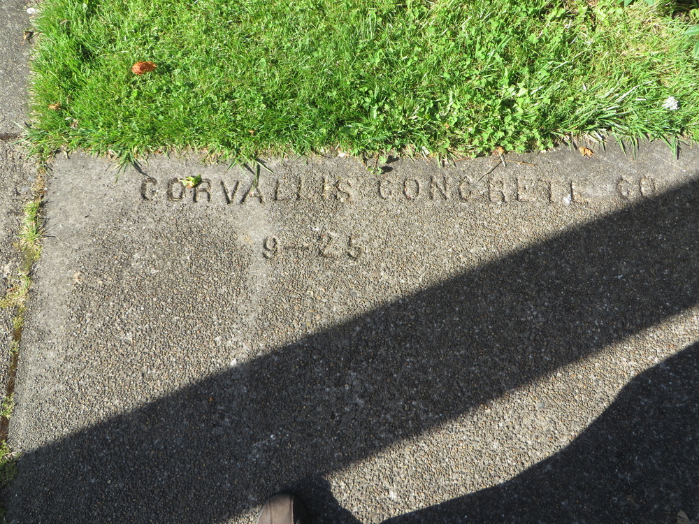 | Inscription | CORVALLIS CONCRETE CO 9-17-25 (The 'C' characters are backwards) |